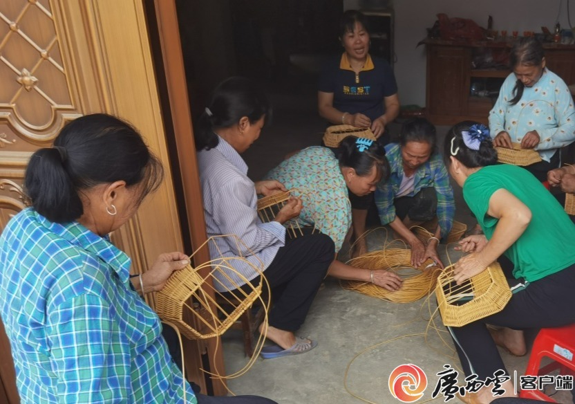 藤編師傅逐一指導(dǎo)村民藤編技巧。黃勇剛 攝 梅寧村是脫貧村,鞏固拓展脫貧攻堅成果、讓村民家門口增收是駐村工作隊的心頭大事。駐村第一書記黃勇剛和隊員正為增收項目發(fā)愁時,一個振奮人心的消息傳來:作登鄉(xiāng)隴那村的藤編產(chǎn)業(yè)已發(fā)展得相當(dāng)成熟,不僅注冊了商標(biāo),形成了品牌,還遠(yuǎn)銷各地。 這或許就是梅寧村增收的突破口。說干就干,黃勇剛立刻帶領(lǐng)工作隊員行動起來,逐屯走訪,了解村民意愿,與村“兩委”商議后,決定引進(jìn)藤編項目,并聯(lián)系隴那村派技術(shù)能手?jǐn)y工具材料前來教學(xué)。
