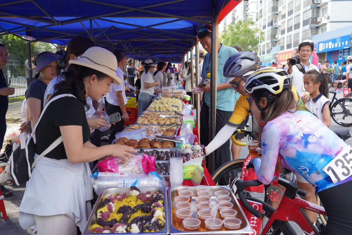 選手品嘗特色美食。馮俊銘 攝 忻城特色美食。 賽事期間,忻城縣精心準備了特色農產品展示展銷活動,現場免費提供的金銀花茶、豆腐圓、糯玉米棒等地方小吃,讓每一位抵達的騎手和游客都能品嘗到地道的忻城味道。這一舉措將體育賽事與地方文化融合,既提升觀賽體驗,又為本土特產提供展示平臺,進一步拉動相關消費。 |