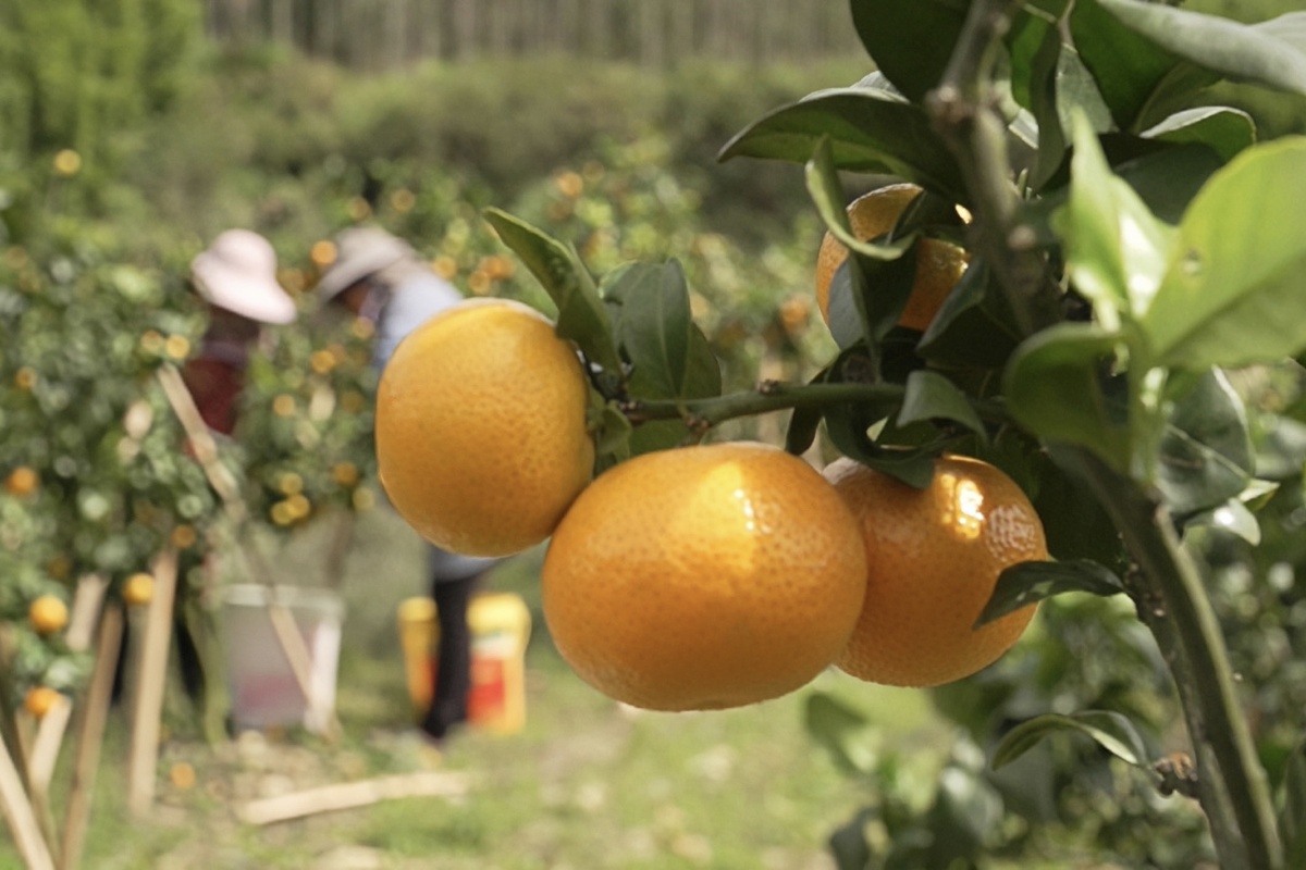 田野間工人在采摘金秋砂糖橘。譚小榮 攝 “我們摘果一天能掙100元,在家門口就能賺錢,日子更有奔頭了!”正在采摘金秋砂糖橘的村民蒙亞苗直起身,擦了擦額角的汗,笑容燦爛。 今年的好收成也帶來了好行情。“我們這兒氣候、水土好,種出的柑橘品質(zhì)格外佳。今年30多畝的金秋砂糖橘是第一年掛果,產(chǎn)量大約有5萬到6萬斤,價格還算可以,地頭收購價每公斤在8元左右。”永和村果農(nóng)周永平捧著剛摘下的砂糖橘,臉上寫滿喜悅。 他口中的“佳果”,是村里近年來著力發(fā)展的金秋砂糖橘和四季紅柑橘兩大“拳頭產(chǎn)品”。其中,30多畝金秋砂糖橘以“早熟”搶占市場先機,而近300畝的四季紅柑橘則憑其“果皮紅亮、風(fēng)味濃郁”備受青睞。