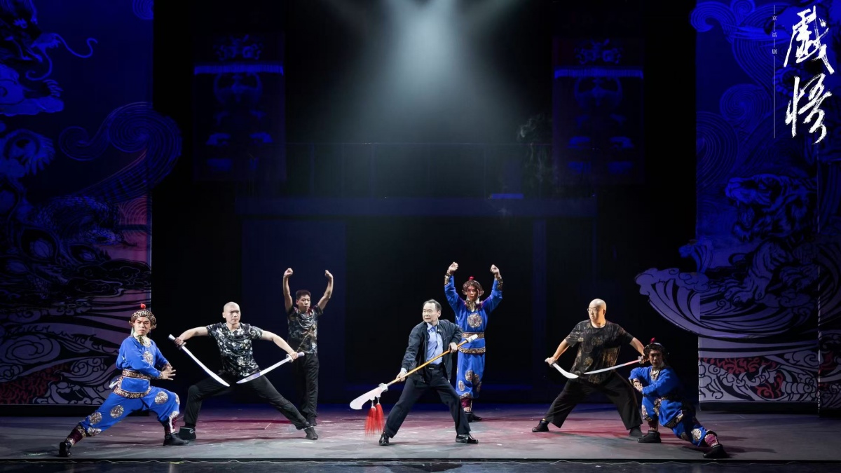 《戲悟》劇照。主辦方供圖 《戲悟》舞臺上,緝毒警察與毒梟的較量在寫實布景中展開,而關鍵轉折處,京劇程式悄然介入:偵查動作化為“走邊”的矯健,獨白帶著“韻白”的節奏,甚至一場追車戲用虛擬的“趟馬”演繹。導演松天碩表示:“我們不想讓京劇成為標本,而是讓它成為流動的血液。”這種“破界”在劇中一場“夢境對決”達到高潮——緝毒警察與反派在京劇武打中騰挪,背景卻是投影制造的賽博空間,傳統唱腔與電子樂碰撞,引得掌聲雷動。