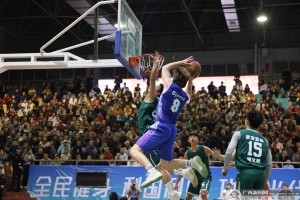 10月23日晚,武宣縣鞍山球館氣氛熱烈,一場國際籃球友誼賽在德國柏林SV1892俱樂部籃球隊與武宣縣籃球隊之間展開。圖為比賽精彩瞬間。記者 陳煜炫 通訊員 廖程 程宇瞰 攝(廣西云-廣西日報)