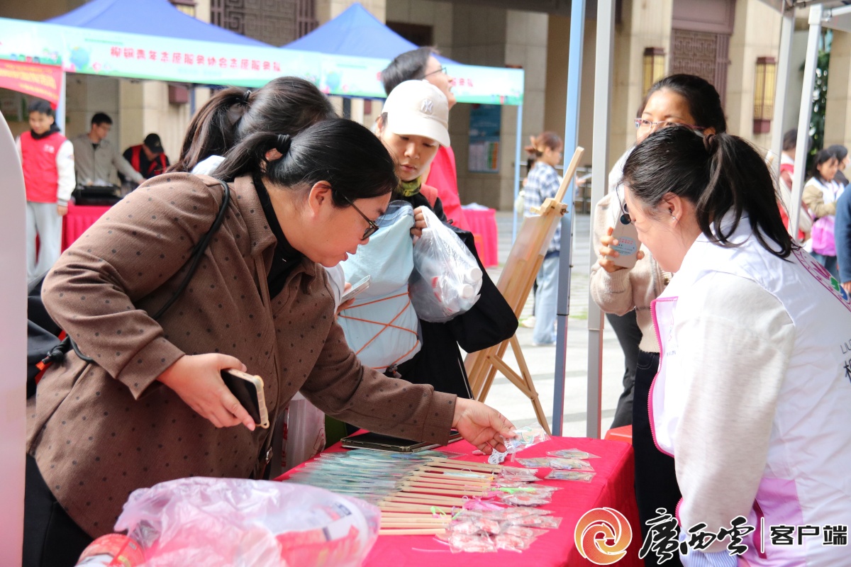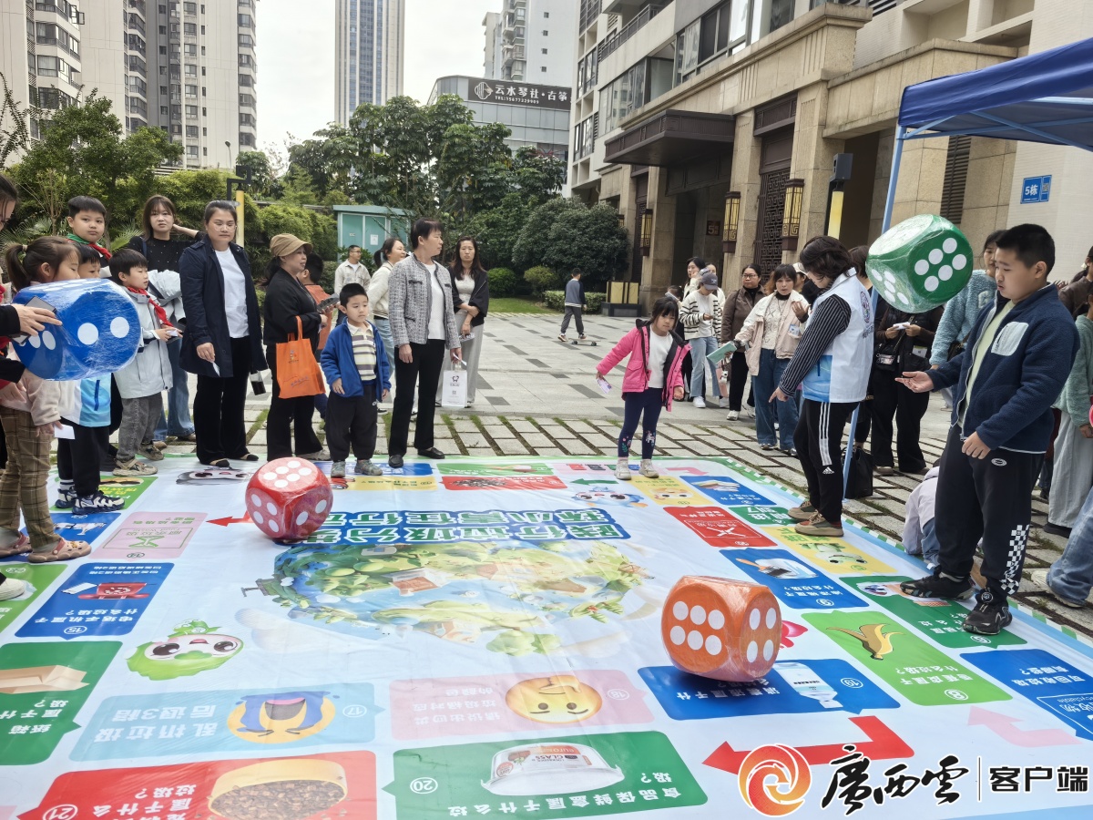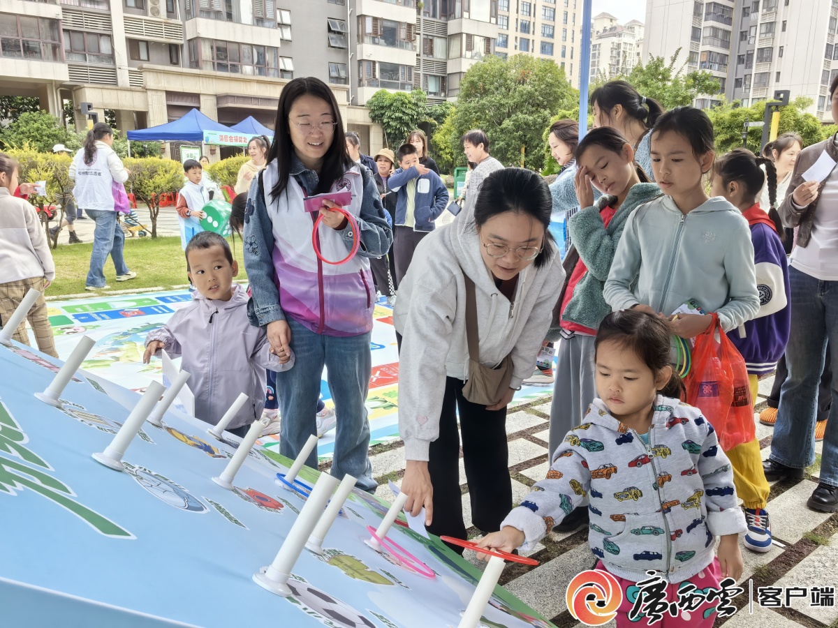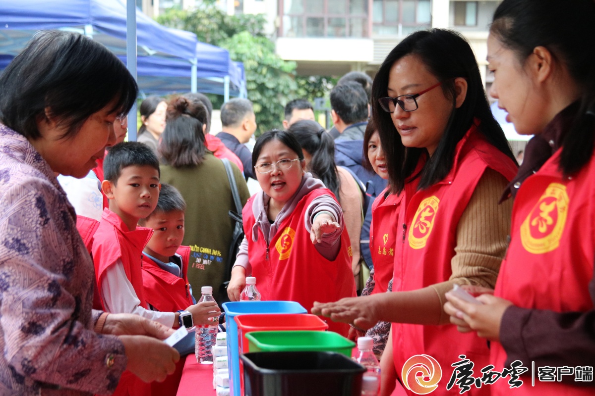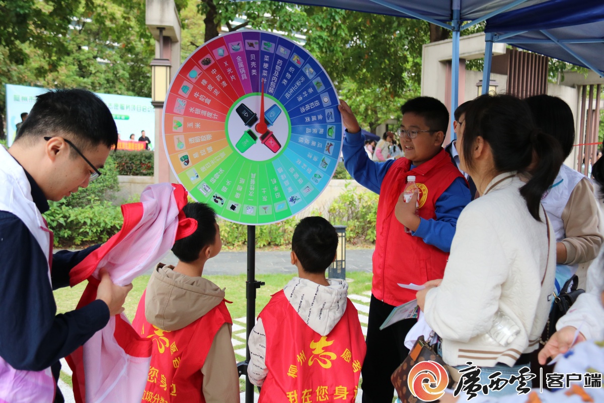 市民參與互動活動。謝永輝 攝 本項目旨在招募和培養一支高素質的青少年志愿者隊伍,圍繞垃圾分類、低碳環保等重點領域,深入社區、學校、扎根基層,開展形式多樣、內容豐富的志愿服務。目前,柳州已有1萬多青年志愿者加入。 啟動儀式由柳州市城市管理局、共青團柳州市委員會聯合舉辦,柳州市環境衛生管理處、柳州市青年志愿者協會承辦。活動現場,還設有垃圾分類主題游園會以及便民服務集市,吸引了眾多市民和青少年學生參與。捐贈礦泉水瓶,可以兌換“環小青”垃圾分類宣傳扇、冰箱貼、鑰匙扣等文創產品;捐贈舊書,就能兌換蔬菜;還有大轉盤、擲骰子、套圈圈。