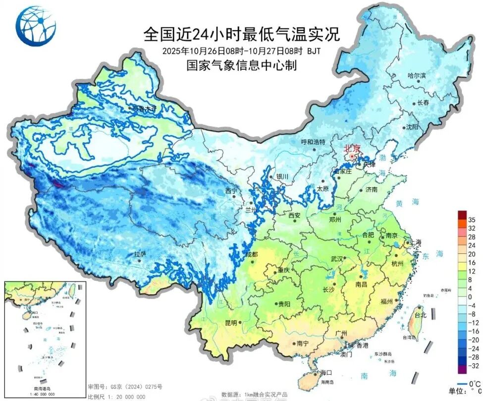我國北方氣溫又創新低! 截至今天8時 哈爾濱、太原、天津、西寧、蘭州、成都 最低氣溫創今年下半年來新低