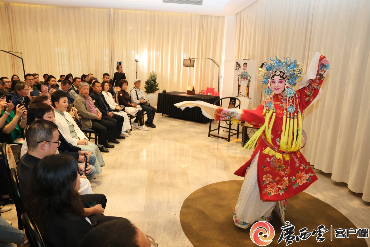 10月26日,中西戲劇對話暨“俏見桂韻·桂劇文化展”在桂林漓江邊拉開帷幕。活動以桂劇為核心,融合彩調、廣西文場、桂林漁鼓等非遺文化,通過現場演出、中外戲劇對話、互動體驗等多元環節,展現中華傳統戲曲的獨特魅力。來自中國、美國、英國、德國、俄羅斯、加拿大、尼泊爾、阿富汗、塔吉克斯坦、老撾、柬埔寨、摩洛哥等十幾個國家的戲劇愛好者及市民游客參加活動。