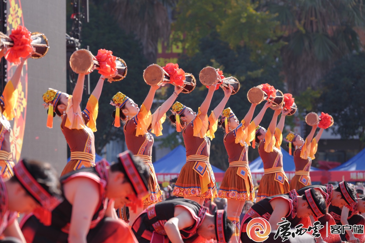 黃泥鼓舞表演。盤(pán)斌 攝 鼓點(diǎn)聲中,《黃泥鼓韻》《花籃載福》等原生態(tài)的歌舞節(jié)目接連上演,演員們飽滿的熱情與精湛的演繹,激起掌聲雷動(dòng)。觀眾席中一位來(lái)自南寧的林女士全程舉著手機(jī)記錄,她贊嘆道:“她們的服飾太美了,特別是頭飾各有特色。在這里看到大多數(shù)本地人都穿著民族服裝,那種原始淳樸的文化氛圍保存得如此完好,真是一個(gè)令人向往的地方。”