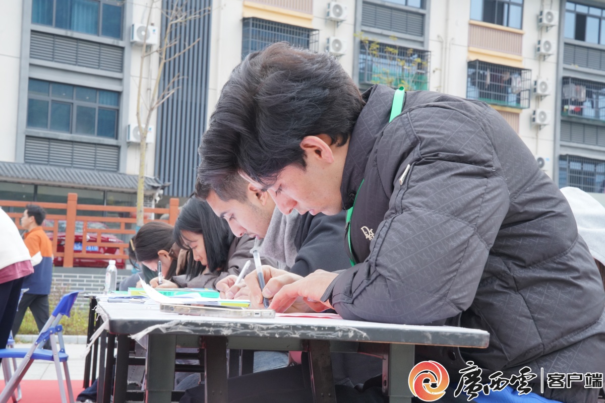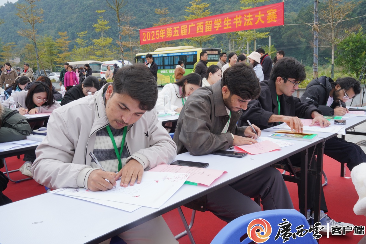 12月5日,第五屆廣西留學生書法大賽在河池市鳳山縣三門海鎮壽源新村舉行。本次大賽以“筆潤漢字傳薪火,墨融中外匯知音”為主題,吸引了來自俄羅斯、越南、巴基斯坦、泰國、老撾等15個國家的111名留學生齊聚一堂,以筆為媒、以墨為橋,在鳳山的奇山秀水間感受中華書法魅力,搭建中外文化交流的橋梁。 12月5日,來自15國的111名留學生齊聚鳳山,以筆墨書寫鳳山詩詞,沉浸式體驗中華書法文化。羅邦福 攝 大賽以描寫鳳山山水人文的詩詞為創作主題,從描寫三門?λ固氐孛驳摹八江h藏勝景”,到歌頌鳳山鄉村振興的“田疇沃野繪新篇”,一首首飽含地域特色的詩詞為留學生們提供了豐富的創作靈感,他們在橫豎撇捺間感受中華書法魅力,搭建中外文化交流的堅實橋梁,盡展中華文化自信。 創作過程中,分別就讀于廣西大學等24所廣西高校的留學生們各展所長,楷書端莊規整、行書飄逸流暢、隸書古樸厚重,不同書體的獨特韻味在筆尖流淌。 留學生沉浸式體驗中華書法文化,搭建中外交流橋梁。羅邦福 攝 來自越南的玉林師范學院留學生農氏廉握著毛筆,一筆一劃認真書寫著“三門海映千山綠,筆墨情牽萬里心”的詩句。她告訴記者,自己研習書法已有兩年多,在書寫過程中不僅感受到漢字的結構美,更體會到其中蘊含的平衡哲學。 “漢字不僅是交流符號,每一筆都藏著古人對生活的感悟。”農氏廉望著不遠處的喀斯特峰林感慨道,“三門海的山水讓我明白,書法的氣韻和自然之美是相通的,就像這山間的流水,既有剛勁的力量,又有柔和的曲線,我要把這份感悟帶回祖國,讓更多人了解中國書法的魅力!