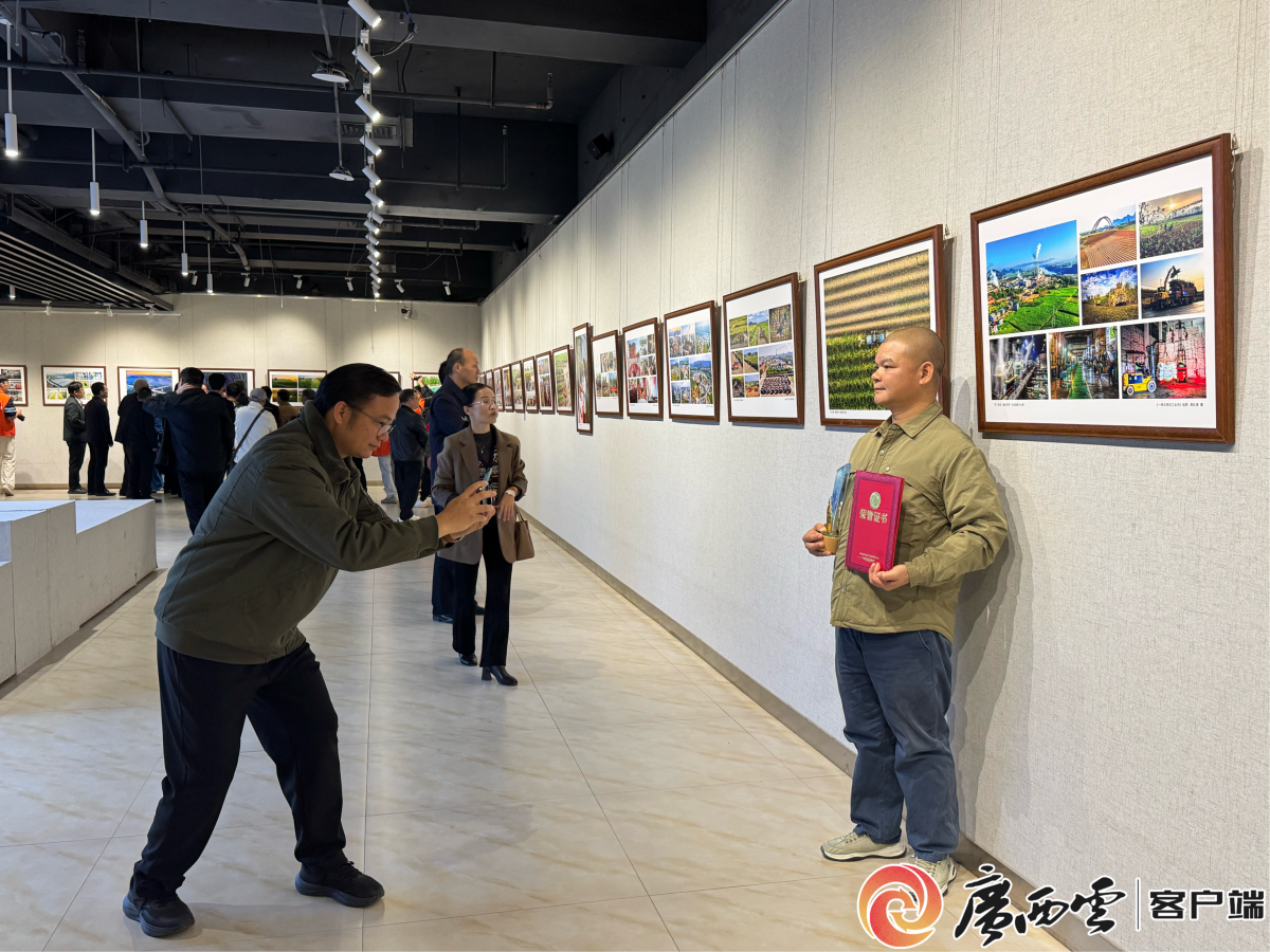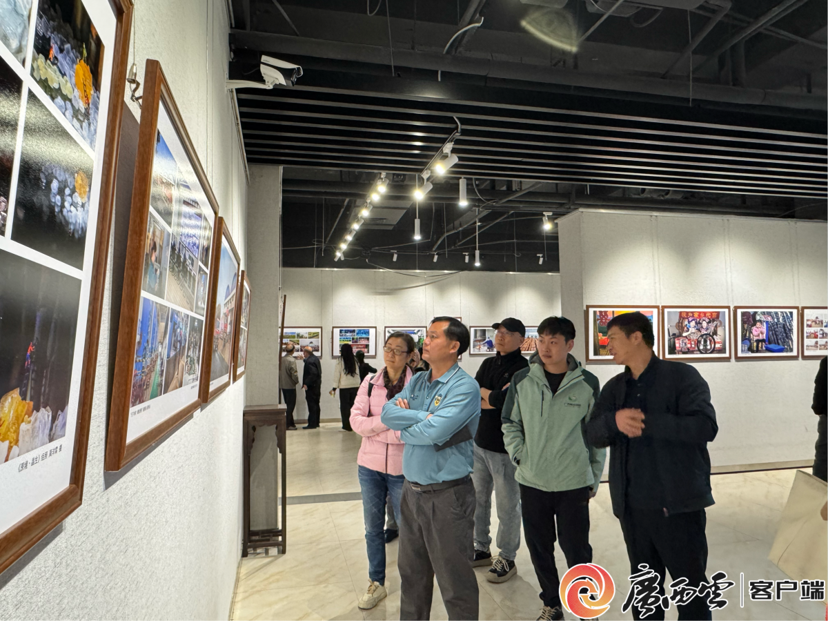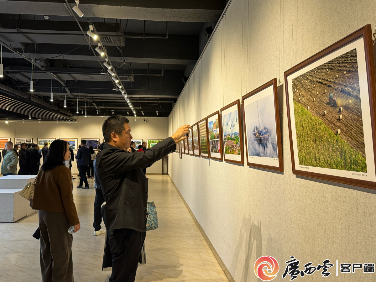 觀眾看展。 “很高興我的作品《舀起一縷甜蜜》能夠入選。我關(guān)注的是紅糖非遺,一根甘蔗從田間到成糖,整個過程充滿勞動者的匠心。”來自河池的攝影愛好者肖金全說,“這個獎對我來說是最大的肯定,也印證了最打動人心的畫面永遠(yuǎn)是來自最真實的生活和產(chǎn)業(yè)一線。”