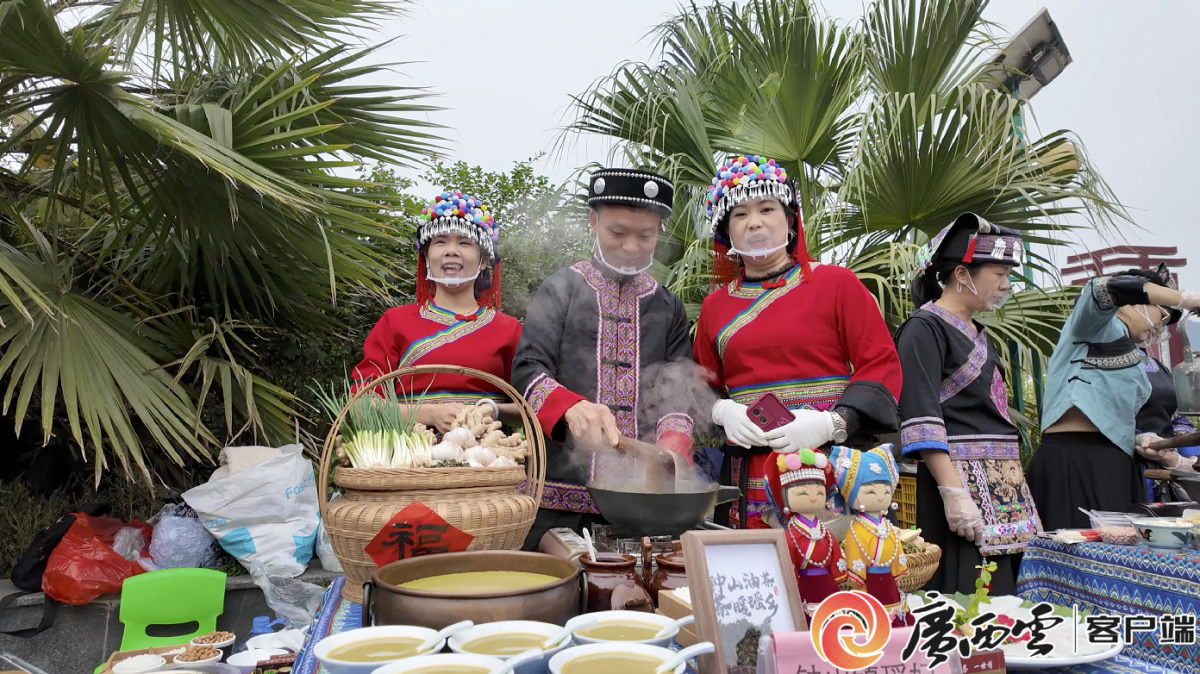 油茶技藝比賽現(xiàn)場。記者 夏曉云 攝 現(xiàn)場搭起的駐村干部直播間引人注目。“今天現(xiàn)場很熱鬧,既能將花山的美好山水和瑤族文化通過線上展示,同時串聯(lián)各鄉(xiāng)鎮(zhèn)特色農(nóng)產(chǎn)品,助力種植戶拓展銷路。”鐘山縣燕塘鎮(zhèn)聚義村駐村第一書記鐘安明說,這是一件“有意義更有溫度”的事。