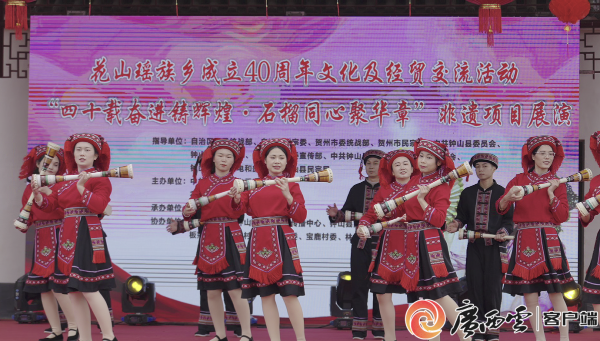 活動現(xiàn)場。鐘山縣融媒體中心記者 陶俊良 攝 “花山瑤族鄉(xiāng)通過舉辦文化及經(jīng)貿(mào)交流活動的方式,和大家一起回顧花山四十年來的發(fā)展變化,把黨的好政策和鄉(xiāng)親們的奮斗歷程講清楚,然后通過豐富多彩的民族文化活動,讓各族同胞的心貼得更近,讓民族團(tuán)結(jié)進(jìn)步的氛圍更濃。同時,也把我們花山的好山好水、特色產(chǎn)業(yè)展示出來,吸引更多人了解花山、投資花山、來花山旅游做客。”花山瑤族鄉(xiāng)黨委書記韋學(xué)萍介紹,在“十五五”期間,將持續(xù)推進(jìn)鄉(xiāng)村振興、產(chǎn)業(yè)發(fā)展,讓群眾生活更加幸福美好。