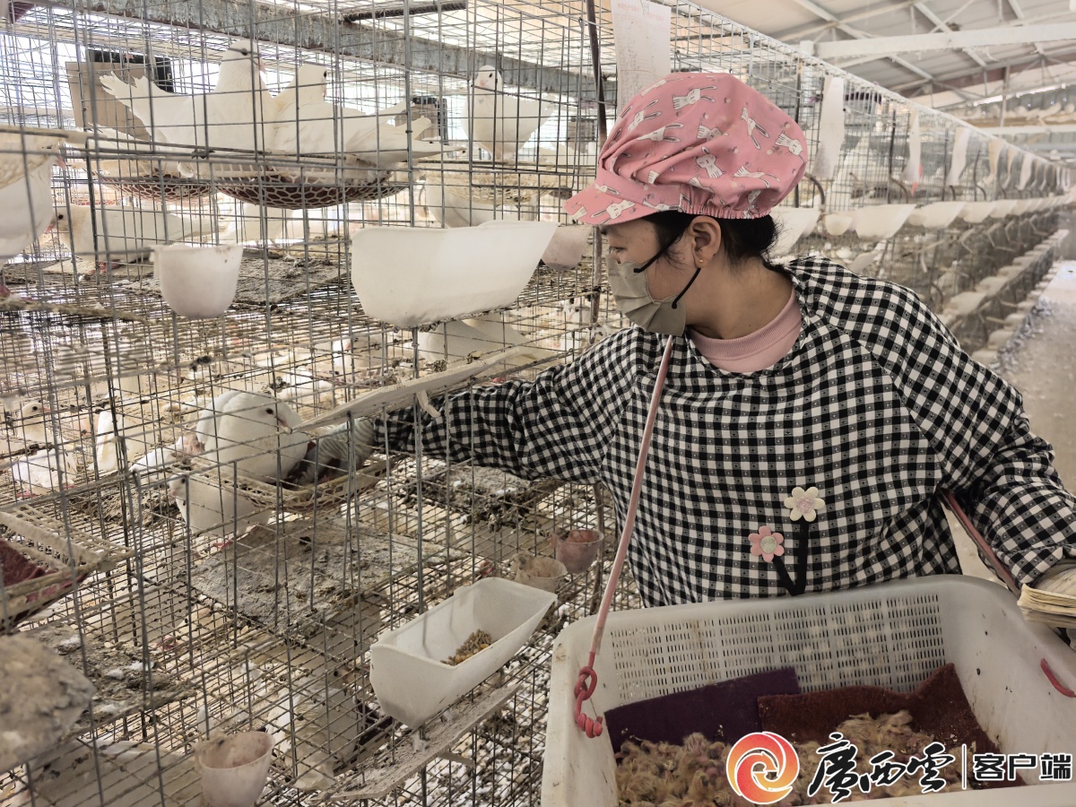 “咕咕……”12月8日,富川瑤族自治縣富陽鎮羊公井村的食用鴿養殖間內暖意融融,上千羽米瑪斯品種食用鴿振翅啄食,管護村民穿梭其間投喂飼料,一派繁忙興旺的景象。返鄉創業者余志雄一邊仔細檢查鴿舍,一邊笑著向記者介紹:“今晚6點要發9000只鴿子去廣東,每只售價16元,這一批就能賺14萬余元!”
