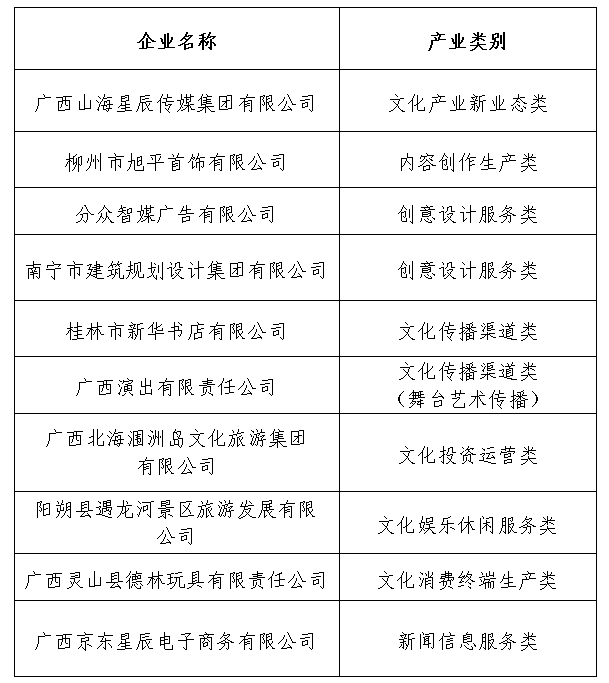 關于2024年度廣西文化產業龍頭企業及“上臺階”獎入選名單的公示 |