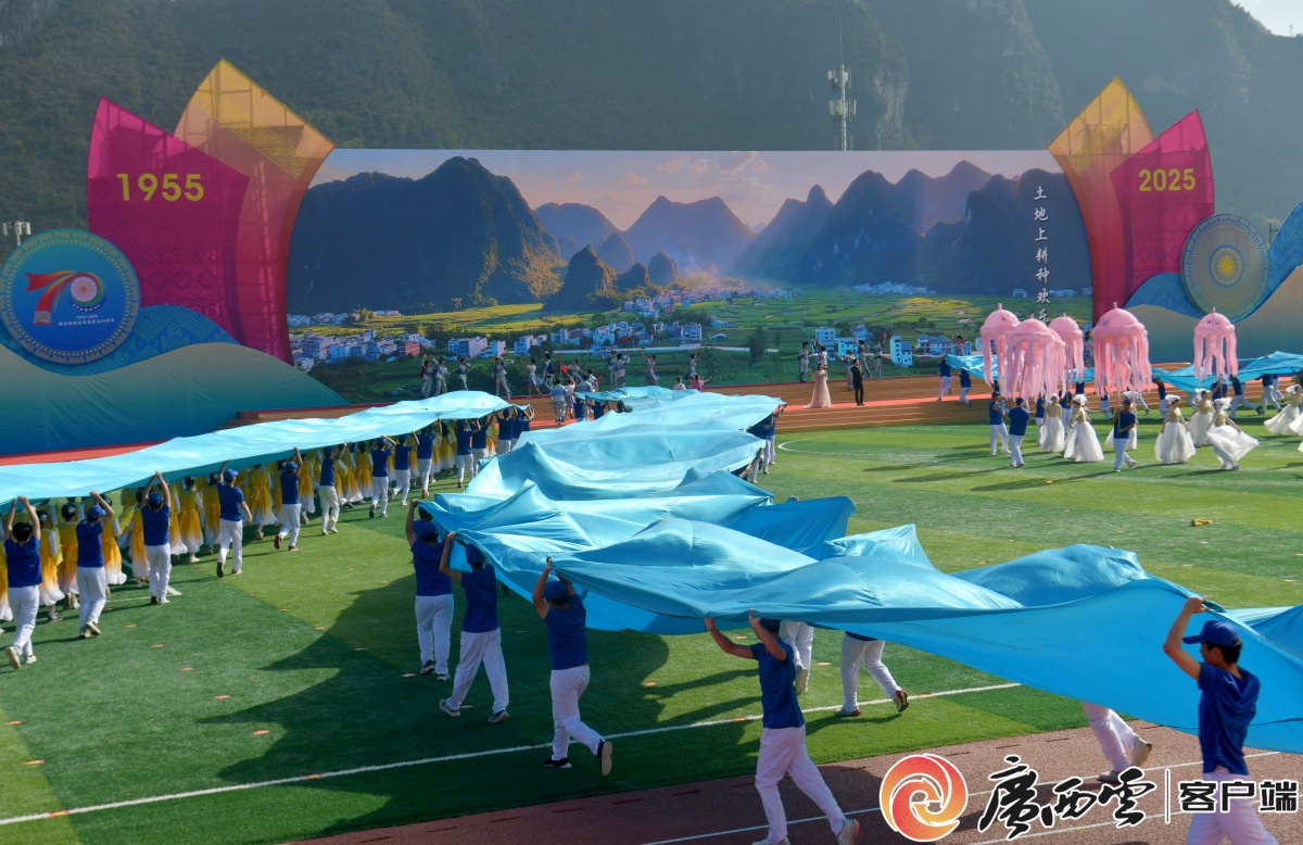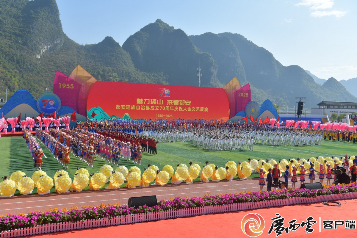 經(jīng)濟(jì)發(fā)展座談會(huì)現(xiàn)場(chǎng)。權(quán)晟 攝 據(jù)了解,從2023年起,都安就規(guī)劃實(shí)施了農(nóng)村道路、水利、醫(yī)療、教育等領(lǐng)域63個(gè)縣慶為民辦實(shí)事項(xiàng)目,爭(zhēng)取到自治區(qū)扶持資金1.37億元。目前已有36個(gè)項(xiàng)目完工并投入使用,其余項(xiàng)目也會(huì)在2026年6月份前全部竣工。這些項(xiàng)目不僅讓群眾獲得了實(shí)實(shí)在在的實(shí)惠,更激發(fā)了大家的主人翁意識(shí),讓各族群眾真正成為縣慶的參與者和受益者。 氣勢(shì)宏大的群眾文藝表演。 縣慶期間慶祝活動(dòng)不斷,都安策劃了書畫美術(shù)攝影展、非遺展演、山歌擂臺(tái)賽、民族體育運(yùn)動(dòng)展演等一系列群眾性文體活動(dòng),讓廣大書畫攝影愛好者、文藝體育愛好者和各族群眾,用畫筆、鏡頭、歌聲、舞步、賽事等表達(dá)對(duì)家鄉(xiāng)的熱愛,也為社會(huì)各界了解、參與都安各項(xiàng)事業(yè)發(fā)展打開更多窗口。此外,都安還舉辦高規(guī)格的招商引資推介會(huì),重點(diǎn)聚焦高鐵經(jīng)濟(jì)、文旅融合等優(yōu)勢(shì)領(lǐng)域,精準(zhǔn)對(duì)接優(yōu)質(zhì)資源,邀請(qǐng)有識(shí)之士來都安考察、投資,讓更多的好項(xiàng)目落戶都安。 精彩紛呈的群眾文藝表演。 15日的都安,被慶典徹底點(diǎn)燃,以天地為卷,以歡慶為墨,揮灑出一軸朱錦明霞、笙歌不歇的盛世長(zhǎng)卷。彩旗獵獵,似霞光流轉(zhuǎn);瑤錦灼灼,如百鳳來儀。如雷的銅鼓自群山之魄中擂響,與踏地而歌的歡音交響,直上云霄。長(zhǎng)鼓舞動(dòng),是七十年歲月奔涌的磅礴氣韻;織錦飛揚(yáng),展三千載密洛陀薪傳的華美詩篇。滿城笑靨,如星河傾瀉,匯聚成一條溫瀾奔涌的喜慶長(zhǎng)河。 銅鼓聲聲歡迎各界來賓。 群眾文藝表演。 |