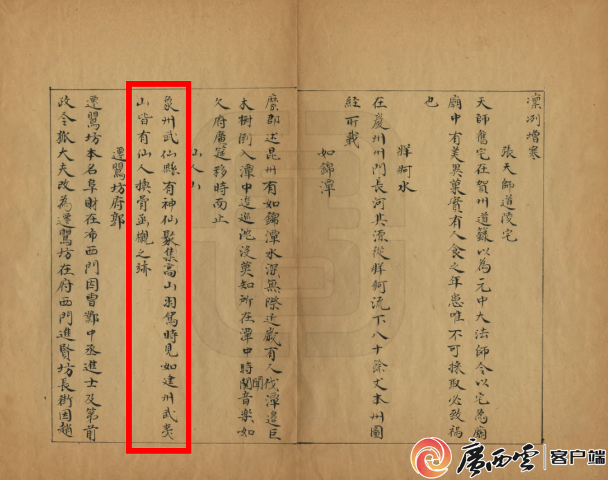 《唐代桂林風土記》中的仙人山。資料圖 此次評審嚴格依據《地名管理條例》及民政部相關行業標準,經專家集中審核評定,旨在挖掘保護地名文化遺產、講好廣西地名故事。武宣縣上榜核心優勢在于其綿延兩千余年的行政建制延續性:自秦始皇三十三年(前214年)置中留縣始,歷經漢、唐、宋、明等朝代更迭,雖先后更名中溜、中胄、武仙等,卻始終保持行政建制未中斷,至今已達2239年。明宣德六年(1431年)定名“武宣”后,地名核心內涵一脈相承,沿用至今已1404年,方言中“宣”“仙”同音的文化傳承更顯獨特。