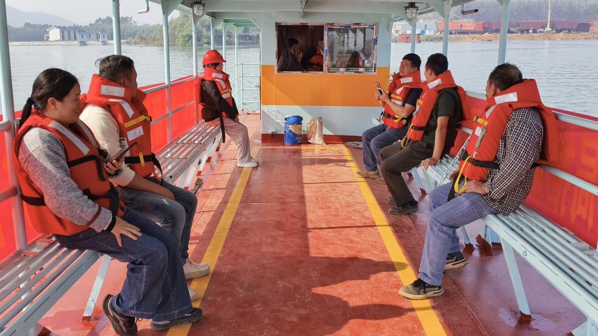 武宣眾順船廠工人,上船體驗新的客渡船。向國華 攝 “這艘船從設計到建造,我們都緊扣鄉鎮客渡運的實際需求,船體采用高強度鋼材打造,耐腐蝕、抗沖擊,客艙內設置了防滑地板和舒適座椅,載客量比舊船提升了20%,能更好滿足朗村群眾的出行需求。”眾順船廠負責人陳維在現場介紹,“我們組建了專業技術團隊,嚴格按照設計圖紙和施工規范,精雕細琢每一個建造環節,歷時3個月匠心打造,才讓這艘新船順利吉水。” 朗村渡口是武宣縣目前唯一仍在運營的客運渡口,盡管受陸路交通發展影響日常客流量有所下降,但在榨季、節假日等特殊時段,仍是群眾便捷過江的重要選擇。二十年來,老舊渡船“武宣橫017”風雨無阻穿梭于黔江兩岸,承載著二塘鎮朗村及周邊群眾的出行需求,運送務工村民、物資與走親訪友的鄉鄰,既是連接兩岸的“水上紐帶”,也是武宣鄉村發展、民生變遷的有力見證。