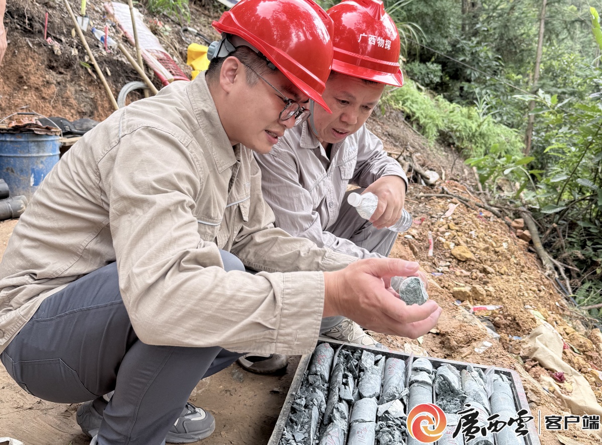 地質隊員在觀察鉆孔巖心。廣西地球物理勘察院 供圖 廣西地礦局下屬單位廣西地球物理勘察院副院長楊富強告訴記者,該院深度參與了“金秀礦”找礦工作。2024年以來,先后實施了基礎地質調查、礦產勘查、科研等多個項目,圈定了一批物化探異常、找礦靶區,獲得了金秀地區主要巖體成巖年齡和鎳礦成礦年齡,初步探討了金秀地區鎳礦成礦物質來源和主要控礦因素,為該區鎳礦找礦突破提供了技術支撐。 |