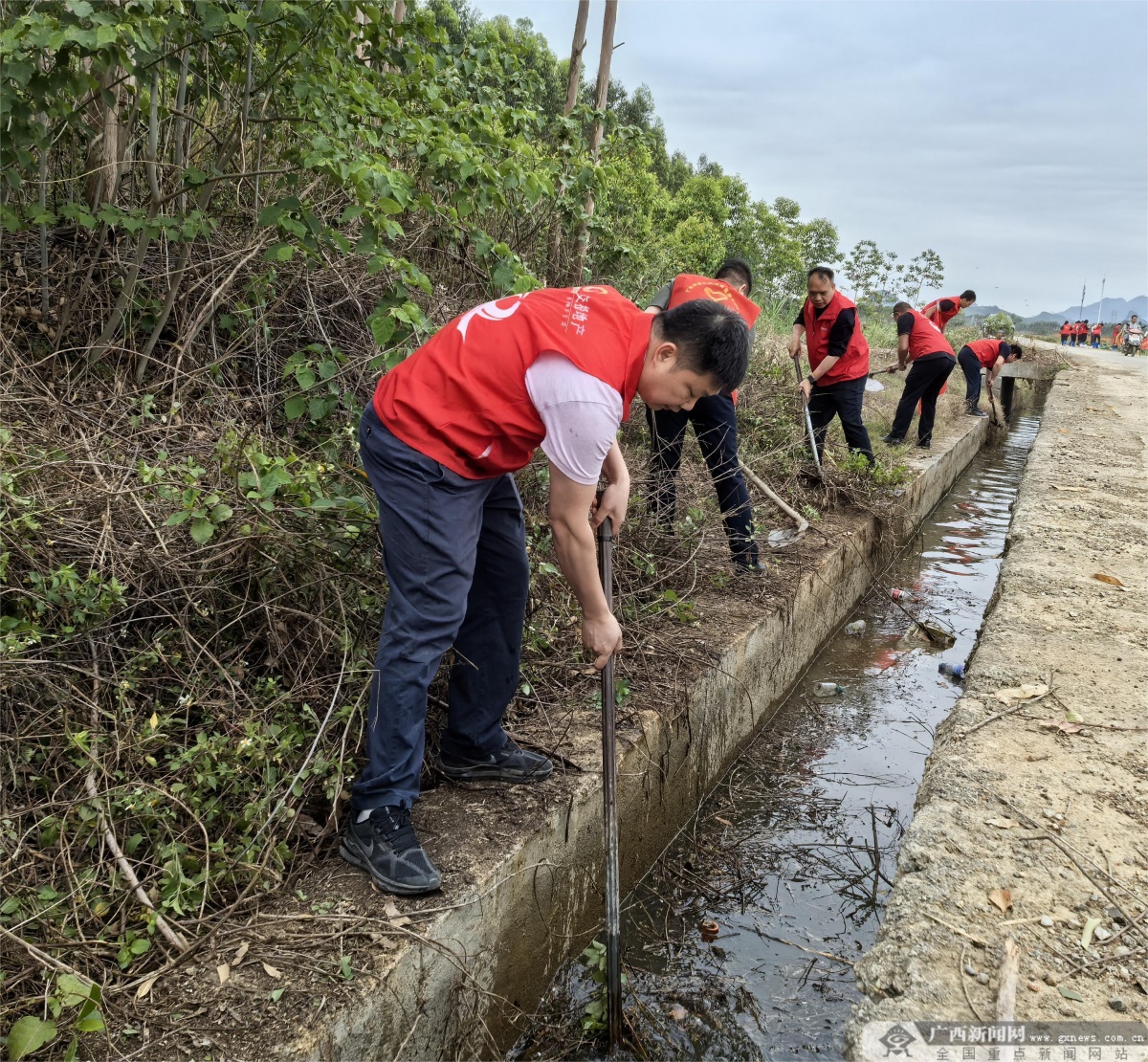 黨員干部深入項目帶頭清理渠道內的淤泥和雜草。廖媛 攝