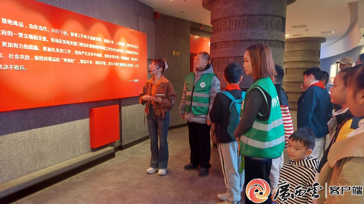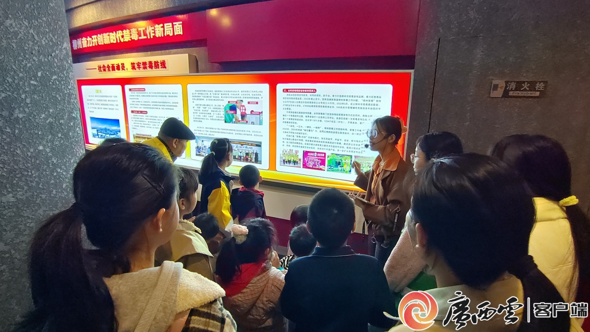 活動現場。魚峰區委宣傳部供圖 為深化禁毒宣傳教育,筑牢青少年健康成長防線,近日,柳州市魚峰區各街道組織禁毒社工與轄區居民家庭,開展“拉近親子距離,推遠毒品風險”禁毒主題“親子游”活動 。 在麒麟街道的組織下,首批社工與親子家庭共15組家庭率先走進柳州市禁毒教育基地。他們參觀了禁毒形勢、毒品防范、毒品危害等多個展區。仿真毒品模型前,大家認真辨識偽裝成“奶茶粉”“跳跳糖”的新型毒品;3D影像體驗區里,青少年沉浸式“親歷”毒品危害場景,直觀感受其對身體和家庭的毀滅性打擊;禁毒宣誓墻前,大家共同莊嚴宣誓,許下“珍愛生命、遠離毒品”的鄭重承諾。禁毒社工結合真實案例,向家長和孩子詳解毒品對個人健康、家庭幸福的危害,傳授日常防毒拒毒實用技巧。