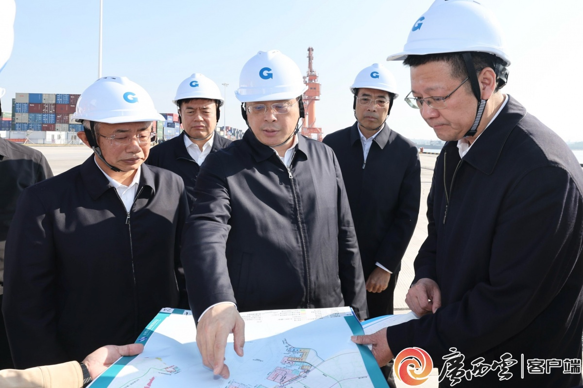12月18日至19日,自治區(qū)主席韋韜深入玉林市,調(diào)研港口和產(chǎn)業(yè)園區(qū)建設(shè)、新興產(chǎn)業(yè)發(fā)展、特色產(chǎn)業(yè)培育等工作。韋韜來到玉林海港碼頭,實地了解碼頭作業(yè)區(qū)項目規(guī)劃和前期工作推進情況。廣西云-廣西日報記者 鄧華 攝 廣西廣播電視臺《廣西新聞》報道。 產(chǎn)業(yè)園區(qū)是縣域經(jīng)濟發(fā)展的主戰(zhàn)場。玉林市大力發(fā)展園區(qū)工業(yè),其中龍?zhí)杜R港產(chǎn)業(yè)園區(qū)規(guī)上工業(yè)產(chǎn)值連續(xù)11個月保持增速50%以上,全年預(yù)計產(chǎn)值超450億元。韋韜來到該園區(qū),實地察看華友廣西鋰電新能源材料一體化智能制造基地,調(diào)研了解項目建設(shè)和生產(chǎn)工藝流程;走進廣西玉銅新材料科技有限公司,察看高端銅桿生產(chǎn)線和系列產(chǎn)品展示,要求企業(yè)進一步提高產(chǎn)量、降低成本、拓展市場,積極引入上下游企業(yè),共同參與產(chǎn)業(yè)園區(qū)建設(shè);玉林市及自治區(qū)有關(guān)部門要謀劃修建專用公鐵線路,完善配套路網(wǎng),為重點企業(yè)做強做優(yōu)提供要素保障。