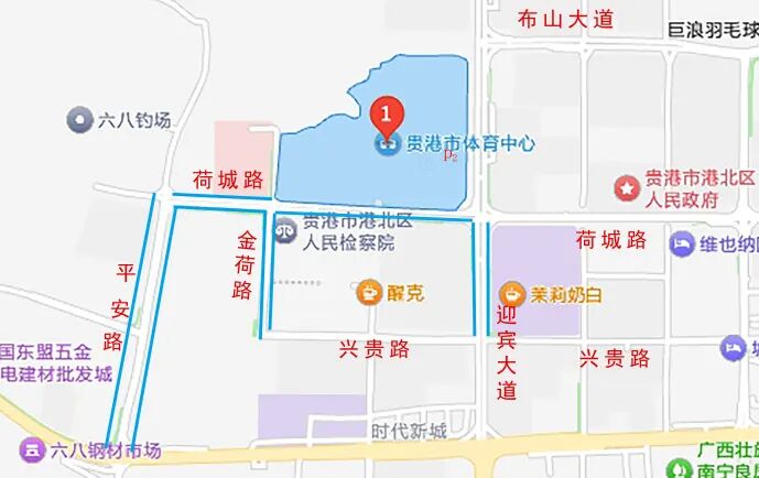 (1)金荷路(金港小學西側支路)雙側輔道; (2)迎賓大道(興貴路口—荷城路口)雙側輔道; (3)平安路(金港大道—荷城路口)雙側輔道; (4)荷城路(迎賓大道路口—金荷路口)南側輔道; (5)荷城路(金荷路口—平安路口)兩側輔道。 備注:非上述臨時停車點,共享車輛將無法鎖車還車。 共享單車、二輪車停車場