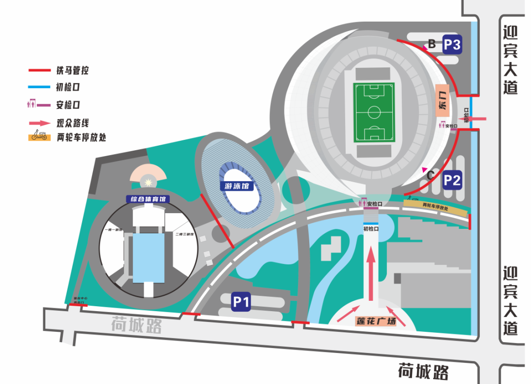 禁止攜帶物品清單 為了安全與觀賽體驗,以下物品禁止攜帶入場 易燃易爆物品 管制刀具 食品飲料、瓶裝水 專業攝影攝像設備 長柄雨傘 雙肩包、行李箱 燈牌 橫幅和旗幟 觀賽溫馨提示 請務必攜帶紙質門票,一人一票,兒童也需持票哦~ 入場時請配合安檢,聽從工作人員指引。 對號入座,請勿在通道站立,中途離場需憑票主券再次入場。 如遇緊急情況,請保持冷靜,按廣播和工作人員指引有序離場。 開幕式暨揭幕戰交通示意圖