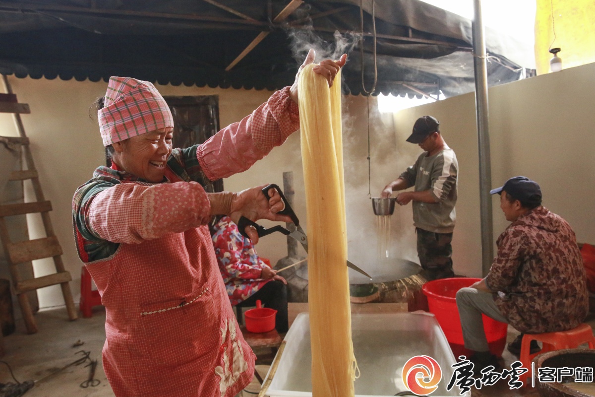 村民正在制作粉條。李成華 攝 “現在天氣晴,正是曬粉條的好時候,我們每天天不亮就開工,就盼著趕在冬至前把這批訂單發出去。”正在翻曬粉條的村民王凱琴笑容滿面,一邊麻利地翻動粉條,一邊算起增收賬,“以前做粉條就是小打小鬧,要么自家吃,要么過節送親戚,從沒想著這老手藝還能當‘搖錢樹’!現在訂單不斷,光是做粉條這一項,我家一年就能增收2萬元,這一根根粉條,就是我們的‘金條條’啊!”
