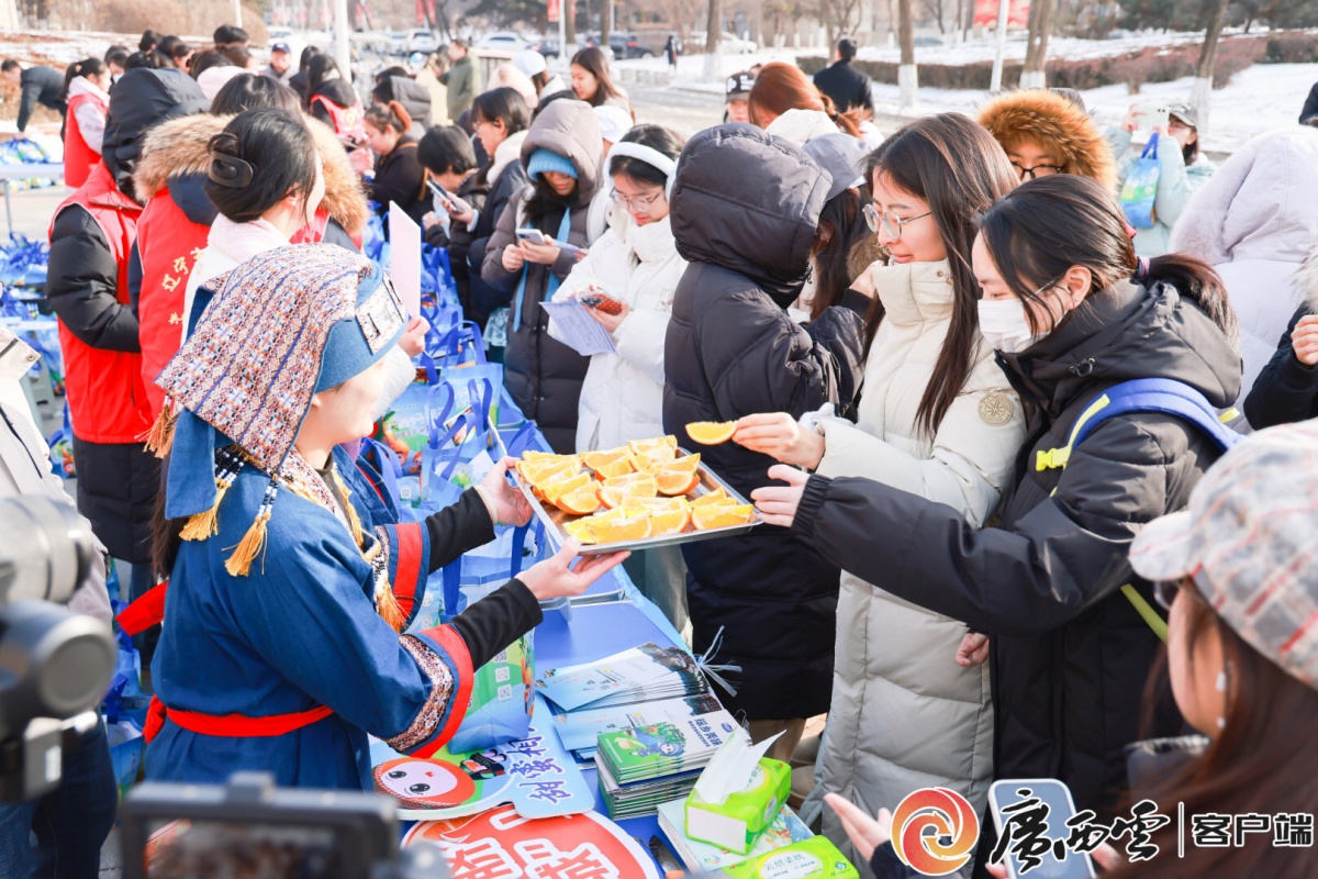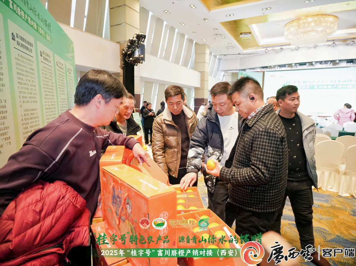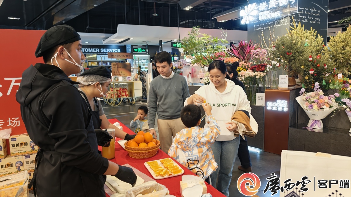 “冬游廣西廣旅行”宣傳推介活動在遼寧大學派發廣西好果子富川臍橙現場。來源:廣西旅游發展集團 這份“生態佳味”底氣十足。2006年10月,一場全國臍橙品質評比大賽匯聚4大產區30多個縣的95個樣品,富川選送的臍橙在激烈角逐中斬獲第一名,成為當年唯一獲評“中國名牌農產品”的臍橙品牌。“第一好吃臍橙”的美譽,自此成為富川臍橙闖蕩市場的“金字名片”。 得天獨厚的生長條件,是富川臍橙品質的硬核支撐。地處“贛南—湘南—桂北”柑橘優勢產業帶核心區,富川坐擁國家重點生態功能區的生態優勢,年均19℃的亞熱帶季風氣候,搭配富含鋅、鐵、硒的紅色沙壤,滋養出果形圓潤、色澤金黃的臍橙。其果肉糖度穩定在13%—15%,酸度契合0.6%—0.7%的國際標準,75%的超高可食率,讓每一口都充滿清新濃郁的果香。 40年匠心耕耘,20年品牌堅守,富川臍橙產業不斷壯大。如今,全縣臍橙種植面積達27.26萬畝,紐荷爾、華臍等優質品種遍地生根,先后斬獲國家地理標志產品、圳品認證等多項權威認可,品牌價值高達49.68億元。當地構建起“種植—加工—物流—銷售”全產業鏈體系,30余家農業龍頭企業引領發展,“龍頭企業+合作社+農戶”的模式,帶動2萬余農戶、10萬余人就業增收,人均年增收超1.13萬元,小小的臍橙,成了名副其實的“富民果”。 “好果子”要賣出“好價錢”,渠道布局與品牌塑造是關鍵。2025年入冬后,富川臍橙的“全國行”按下加速鍵。“去年我們在大型商超渠道沒有突破,今年成功進駐永輝超市、華潤Olé等知名商超。”富川特色產業發展中心主任劉繼勇介紹。 12月的西安,富川臍橙產銷對接活動熱鬧非凡,8家采購商現場簽約,合作金額超5000萬元,成功叩開西北市場大門;同一時段的南寧,富川工作組走訪廣百家超市、Olé精品超市等企業,圍繞入駐商超、品牌共建洽談合作,專場品鑒會上,鮮甜的臍橙