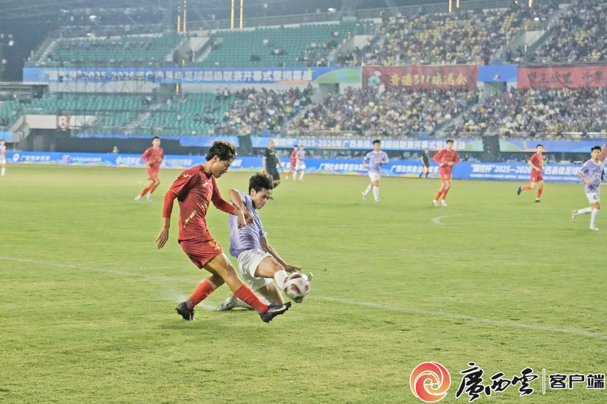 12月20日晚,2025—2026年廣西縣級足球超級聯賽(簡稱“縣超聯賽”)在貴港市體育中心體育場揭幕,一場廣西全民健身足球大戲正式開啟。揭幕戰中,貴港市港南區足球隊以點球擊敗梧州市蒼梧縣足球隊,取得開門紅。