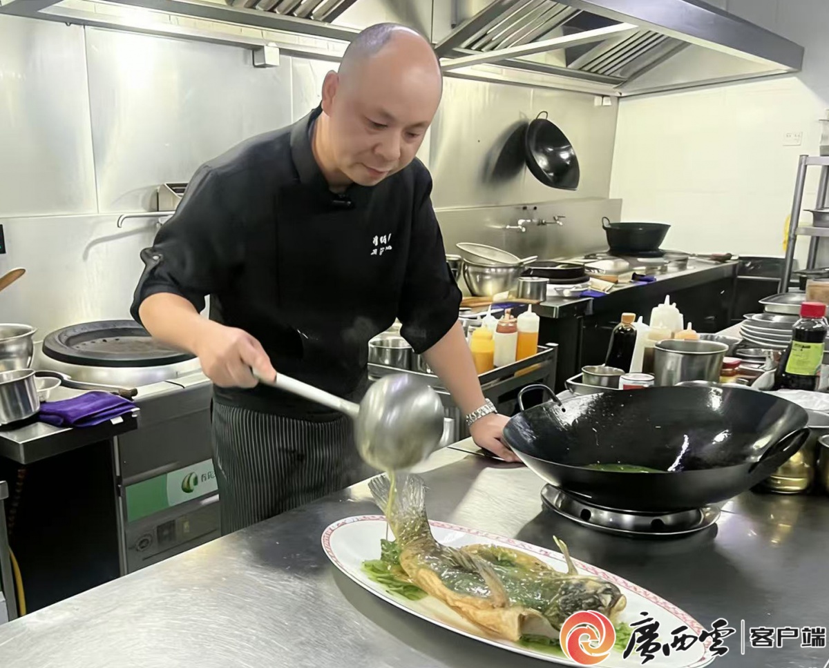 廣西烹協藥膳委理事、梧舟茶宴總廚李滋華烹飪非遺蔥油魚。葉焱焱 攝 從甜糯湯圓到鮮香咸粽 從傳統藥膳到中西合璧 廣西冬至餐桌的 “C 位” 各有千秋 都早已超越食材本身 成為多元文化的載體與情感聯結的紐帶 團圓的暖意與文化的交融 才是八桂冬至宴中永恒的主角 訴說著廣西人對生活的熱愛與對未來的期盼 一碗生魚片 百福入饌來