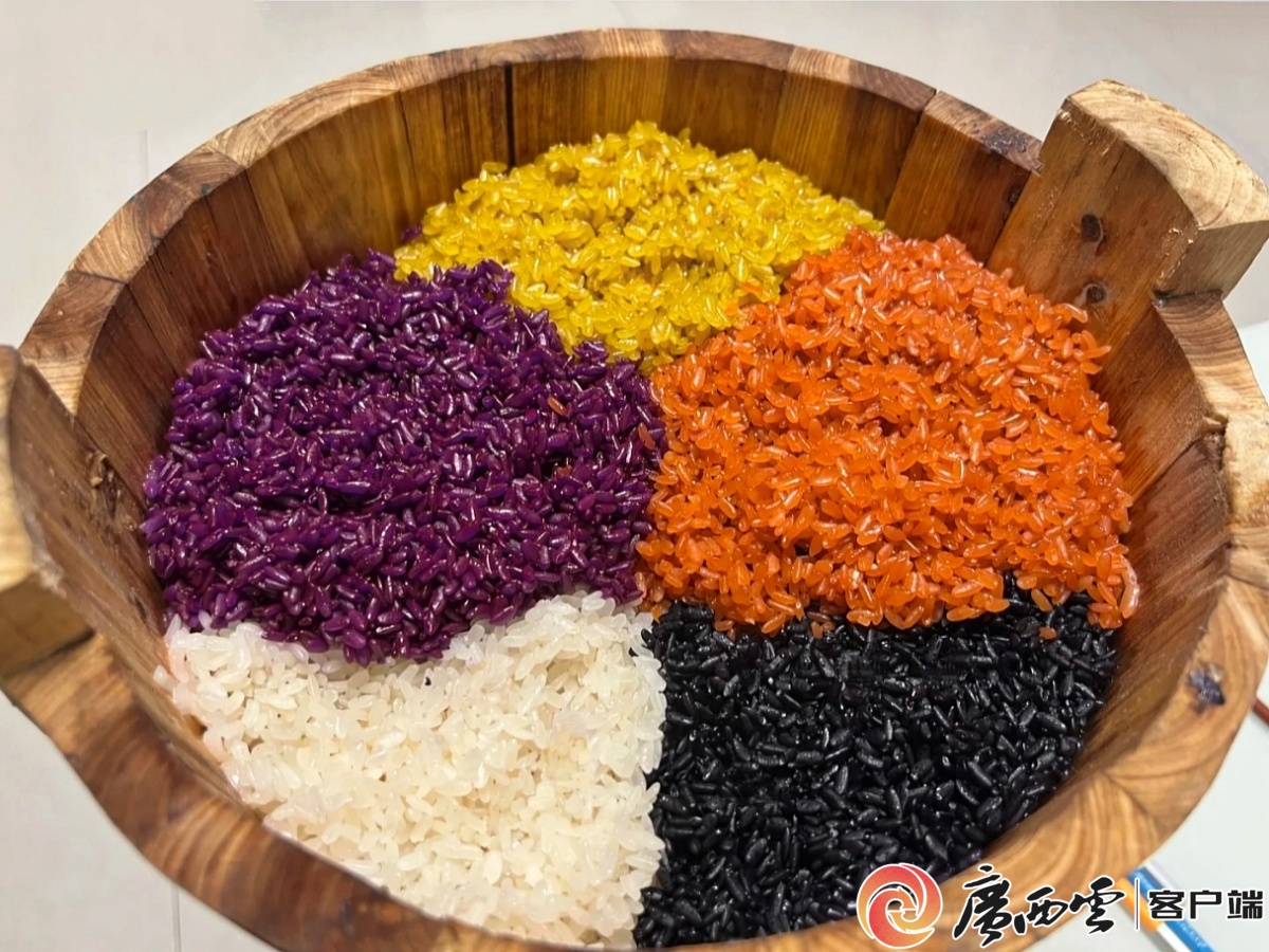 五色糯米飯。譚松沛 攝 廣西南北冬至習俗的差異 生動體現地理環境、氣候條件與民族文化的交融 各世居民族文化特色鮮明 節慶習俗融入了本土生活智慧 更顯日常化與生活化 冬至文化在八桂大地的多元呈現 凸顯“和而不同”的多元一體格局 其中的團圓期盼、對自然的敬畏與對生活的熱愛始終相通 八桂兒女以各自的方式 共同傳遞著對美好生活的真摯期許 天時人事日相催 冬至陽生春又來