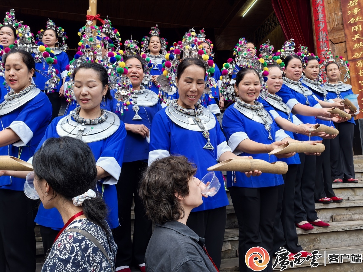 游客體驗高山流水。記者 王克礎 攝 長桌連起家家戶戶 也連起了侗家人“聚族睦鄰”的情感紐帶 鼓樓前 代際之間的技藝傳承、鄰里之間的協作精神 正隨著一碗碗油茶、一曲曲敬酒歌得以延續和彰顯
