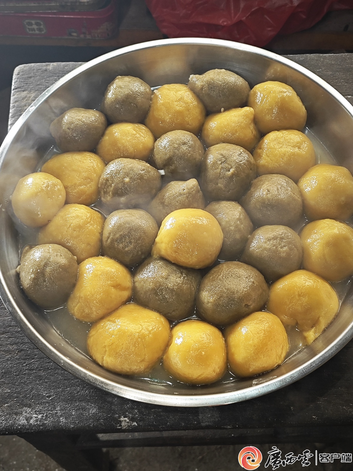 合浦竹殼。 竹殼裹住的不僅是軟糯清甜 更是跨越千年的文化密碼 當游子咬下一口 舌尖涌起的不僅是故鄉味 更是客家人勤勉團結的精神傳承 承載著客家人遷徙奮斗的記憶。 一口“團子粑” 團圓好味道 瑤鄉冬至做團子粑。胡見微 李景妍 攝制 在富川瑤族自治縣 民間一直保留著在冬至時節吃團子粑的習俗 此習俗象征著團圓、和睦和豐收