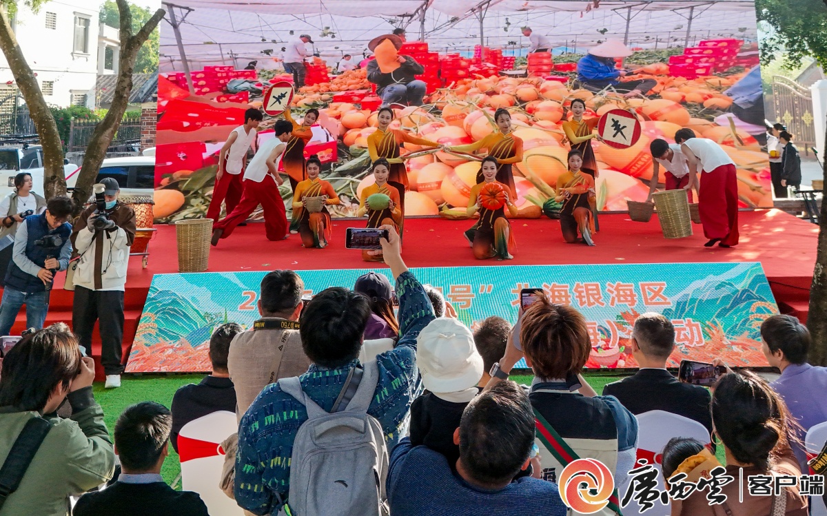 活動現場。畢建東 攝 本次活動由中共北海市銀海區委員會、北海市銀海區人民政府主辦,銀海區農業農村和水利局、銀海區銀灘鎮人民政府承辦,以“廣西生態優勢+產品核心賣點+產銷賦能”為核心,結合線下展銷會、線上推廣、商戶對接等場景,深度對接“一村一基地”產業幫扶模式下的優質供應鏈,是銀海區農業發展成果的一次集中展示,也是搭建農產品產銷橋梁、助力鄉村振興的重要舉措。 精彩的文藝表演。黃勝平 攝