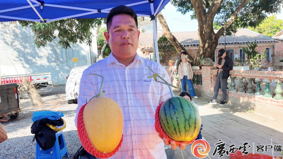 林懷輝展示自家產業示范園產的“甜瓜王”。賓士雄 攝 “今天的活動非常有意義,希望每年都舉辦,政府搭臺,聯通產銷,打通了農產品從田間到市場的‘最后一公里’,可以更好地將銀海區的優質農產品走向更廣闊的市場,也將農民的勞動成果轉化為實實在在的經濟收益。”林懷輝開心地表示。 |