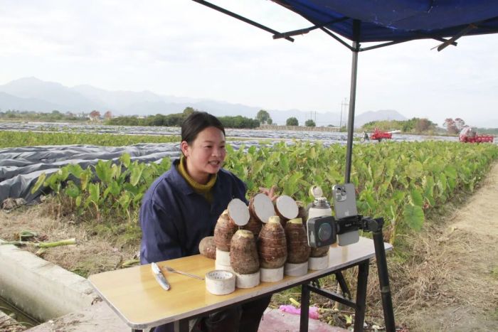 主播“小胖”正在直播間推銷當天早上剛下樹的二代脆皮金桔。 轉變明顯的,還有“阿貴嫂”李麗明。這位在家帶娃十年的“寶媽”,用兩個月時間,從面對鏡頭“不敢說話”到能夠獨立掌控全場,如今她通過幾個賬號,一天能賣出上千斤芋頭。