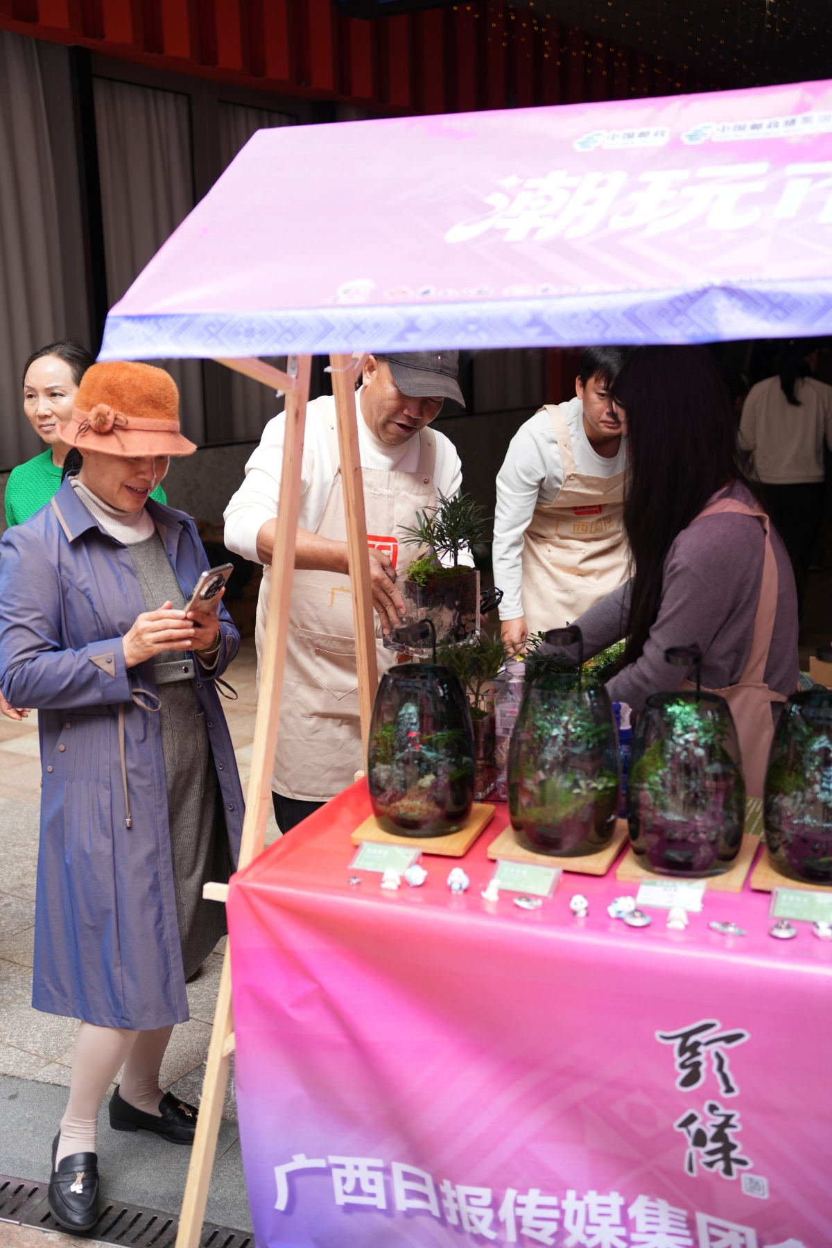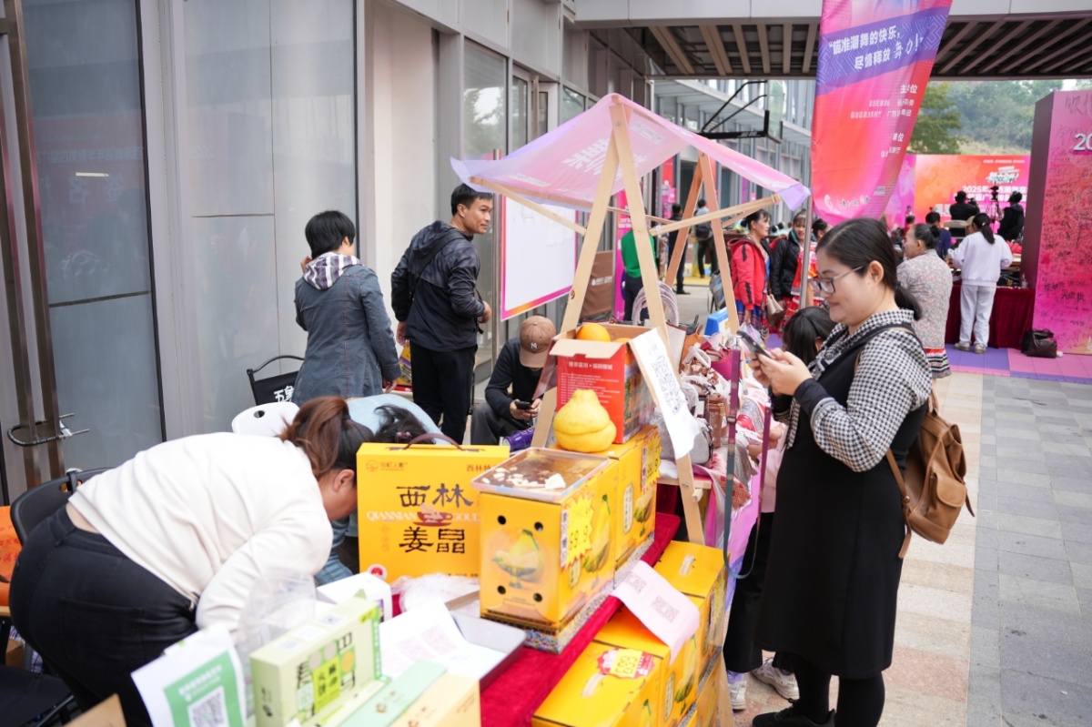 中國郵政的主題文創、廣西云-21號鋪清甜多汁沙田柚、桂林力源地道糧油、南寧榮港生物的酵素土雞蛋、崇左卜花貝儂的花山王紅糖咖啡、農墾明陽農場的綠植深受大眾青睞。