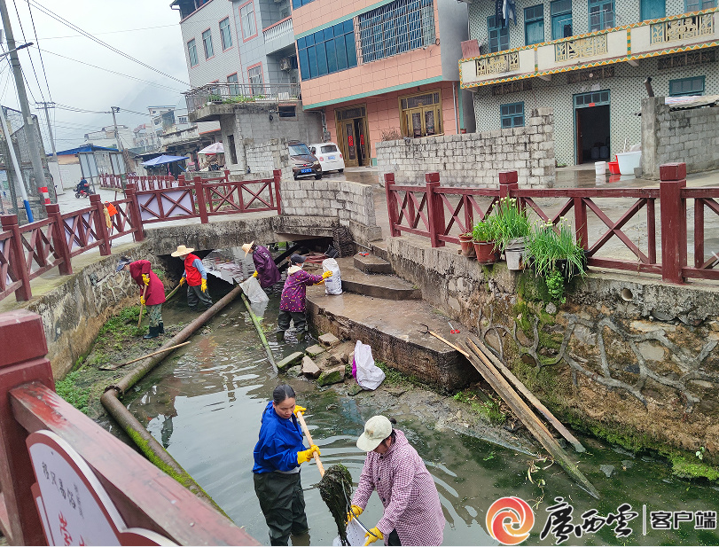 遂意鄉瓊古高基屯群眾在清理進屯道路兩旁雜草。羅金城 吳祖翔 攝 黨群齊心,從“一處美”到“全域凈” 行動伊始,該鄉瓊古村高基屯的30余名村民便自發組織起來,揮鋤執鐮,一口氣將4公里入屯道路兩側的雜草雜物清理干凈,打響了全鄉環境整治的“第一槍”。這一自發舉動迅速得到鄉里的肯定與推廣,一場由政府引導、全民參與的“大掃除”席卷全鄉。 在弄堯村,村民對巷道、公共場所進行“地毯式”清掃;遂意村集中力量整治集鎮秩序與衛生死角;弄江、板桐、聯堡等村則深入清理河道溝渠,規整農家院落。在此過程中,返鄉青年成為生力軍,他們與在鄉的婦女、長者默契配合,青壯年勇挑重擔清理難點,其他人則細致收尾。干群同心、鄰里協作的濃厚氛圍,讓“各掃門前雪”變成了“共護大家園”,不僅顯著提升了鄉村“顏值”,消除了安全隱患,更在勞動中深化了“村莊自己住、環境共同護”的主人翁意識。