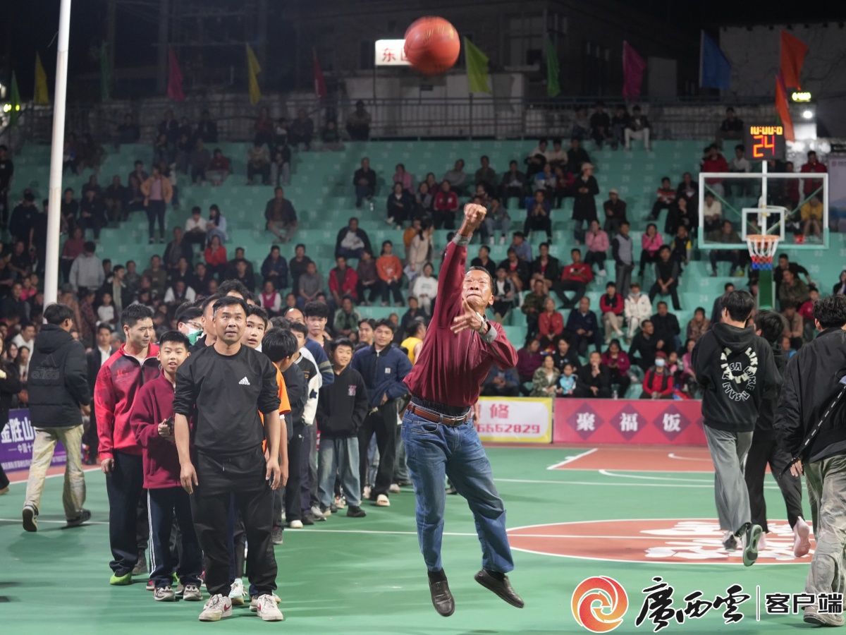 比賽現場。廣西云-廣西日報記者 張鈺斌 攝 哨聲、吶喊聲、報分聲,在晚風中熱鬧;勝負之外,是小鎮里最樸素的情感聯結。 “村里有四個籃球場。我還是10多歲的小伙子時候,就在鎮上打比賽。要是家里有人上場比賽,一家子都會很激動。”場下,鳳文村領隊梁承天一邊為自家球隊吶喊,一邊與記者閑聊。 “當年在踮著腳看球的孩子,如今都成了場上主力。”廖永林感慨。自1982年高中畢業起,他便擔任賽事裁判。如今,隨著年歲大了,他便退居幕后,負責比賽的策劃和承辦。空閑之余,他經常客串賽事解說,用樸素的鄉音與現場觀眾交流。 “一代代人打下去,一代代人傳承下去。”廖永林說,這比賽就像約定好的一樣,是全鎮人的“年味”。一些在外打工的年輕人,每年雷打不動回鄉參賽。